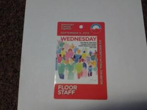 2012 DNC Democratic National Convention Pass - Time Warner Cable Arena / NC.