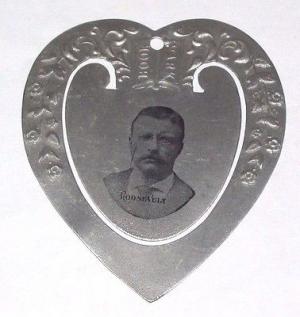 RARE TEDDY ROOSEVELT POLITICAL TIN BOOK MARK, MINT CONDITION, PIN, PINBACK