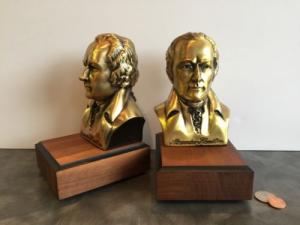 Alexander Hamilton bookends sculpture bust mounted on walnut base