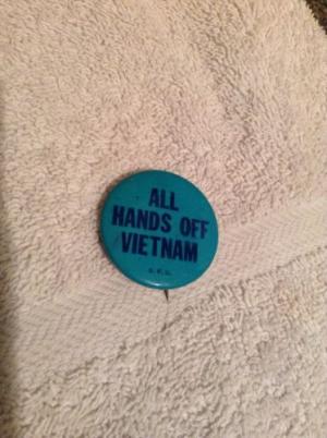 Vintage 1960s All Hands Off Vietnam SPU Anti-War Campaign Pinback Button