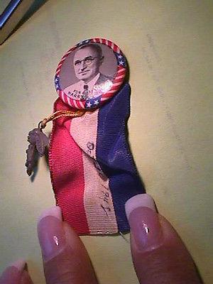 HARRY S TRUMAN campaign pinback button 1948 presidential election Ribbon Donkey