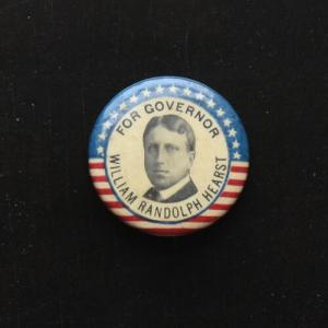 1906 WILLIAM RANDOLPH HEARST FOR GOVERNOR r/w/b PICTURE CAMPAIGN BUTTON