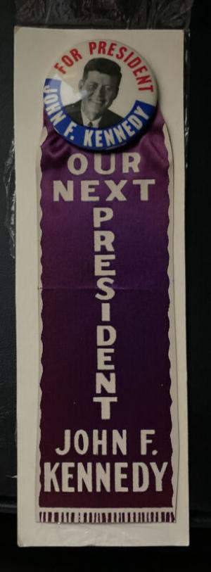 For President John F. KenNedy Button/Pin Plus Our Next President Ribbon.