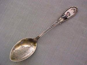 c1900 Sterling SOUVENIR SPOON MCKINLEY HOME w/ENAMEL