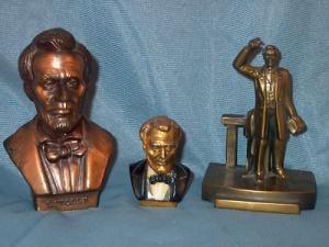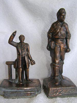 2 VINTAGE 1950'S COPPER ABRAHAM LINCOLN REPLICA FIGURINES STATUES SCULPTURE