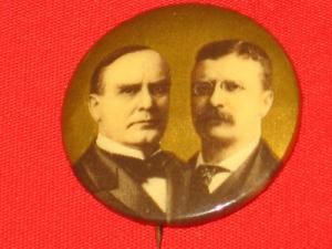 1896 William McKinley, Roosevelt Pinback Button Badge