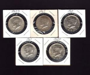 LOT OF 5 40% SILVER KENNEDY HALVES