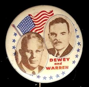1948 DEWEY & WARREN JUGATE FLAG PICTURE CAMPAIGN BUTTON