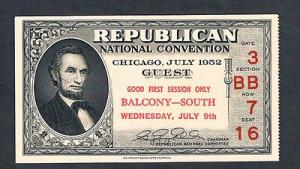 1952 Republican National Convention Guest Ticket Chicago Abe Lincoln