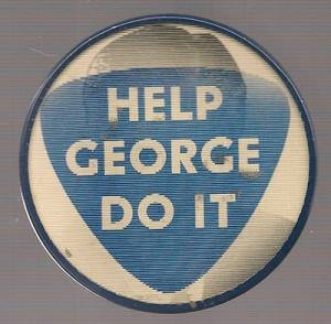 George Romney picture / Let George Do It flasher pinback button pin
