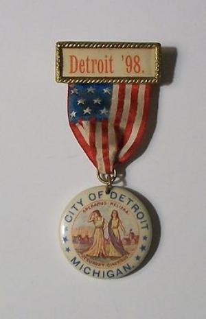 Detroit 1898 badge campaign button political poster pinback celluloid ribbon