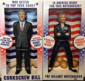 Hillary Clinton Nutcracker and Bill Clinton Corkscrew political figures.