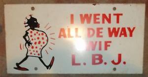 VINTAGE - I WENT ALL DE WAY WIF L.B.J. METAL SIGN BLACK AMERICANA POLITICAL