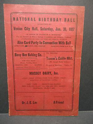 1937 Venice IL National Birthday Ball Franklin D Roosevelt Advertising Program