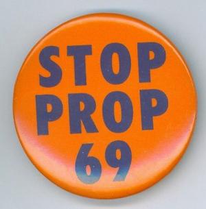 Vintage 1988 Gay Rights California Stop Prop 69 Political Pinback Button