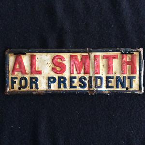 1928 AL SMITH FOR PRESIDENT LICENSE PLATE TOPPER