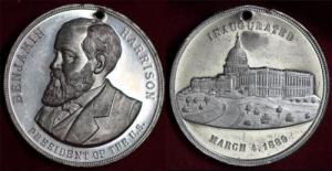 Benjamin Harrison Inaugural Medal March 4, 1889-Prooflike Fields-Holed-BH 1888-3