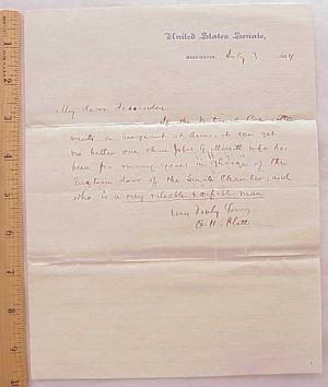 1884 Blaine Campaign Letter United States Senator Orville H. Platt Connecticut