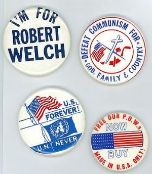 4 Vintage 1960-70's John Birch Society Robert Welch Cause Pinback Buttons