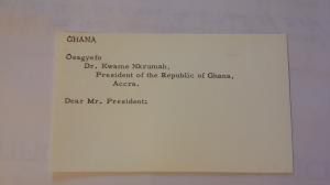 JFK 's Personally Owned " Call Card " for GHANA