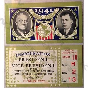 1 Original 1941 US Presidential Inauguration ticket stub FDR Roosevelt & Wallace