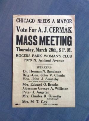 Anton Cermak Campaign Handout For Mayor Of Chicago....Killed While With FDR