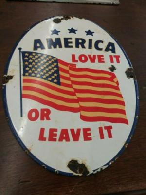 America Love it or Leave it Porcelain Sign Government Propaganda War Flag