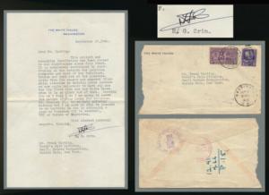 1940 LETTER FROM CHIEF USHER H.G. CRIM RE WHITE HOUSE RENOVATION > NO RESERVE