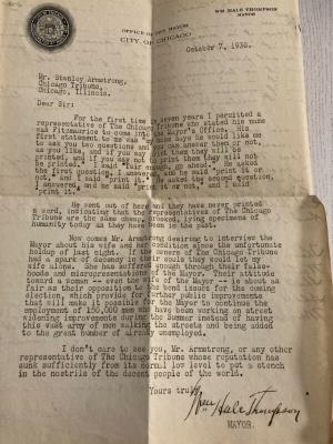 WM HALE THOMPSON LETTER CHICAGO MAYOR