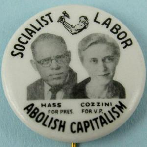 1960 ERIC HASS & GEORGIA COZZINI SOCIALIST LABOR PARTY PRESIDENTIAL PIN BUTTON