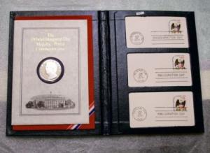 1985 RONALD REAGAN Presidential Official Inaugural SIlver Medal Coin/ Stamp Set