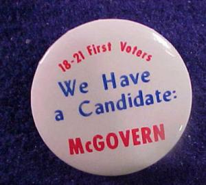McGOVERN BADGE Button Pinback Pin 1972 Nixon Campaign