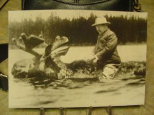 Rare Photo of "Teddy Roosevelt riding a Bull Moose" Dated 1919 on Reverse Side..