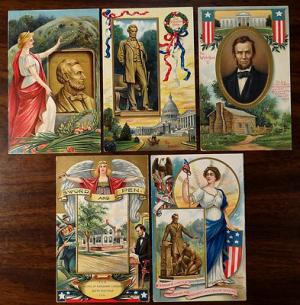 PRESIDENT ABRAHAM LINCOLN 5 Postcards Artist Signed C.Chapman 1908 SWORD & PEN