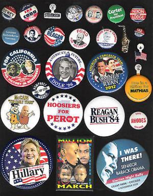 Lot of 75 presidential campaign pinbacks, mix of less common, Guard Frog