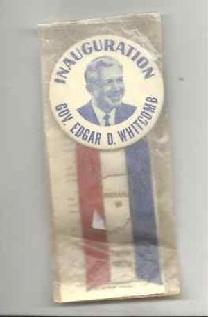 SEYMOUR INDIANA Vintage Governor Whitcomb INAUGURATION PINBACK BUTTON w/ RIBBON