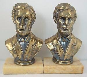 VINTAGE ABRAHAM LINCOLN BUST BRASS FINISH MARBLE BASE BOOKENDS