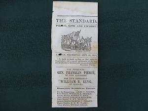 1852 Franklin Pierce/William King orignal Presidential Ballot from N.C. Standard