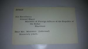 JFK ''s Personally Owned " Call Card " for SUDAN