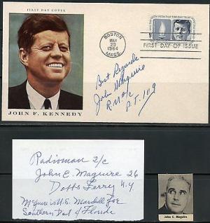 UNITED STATES 1964 JOHN F. KENNEDY FDC AUTOG PT109 CREW MEMBER JOHN MAGUIRE