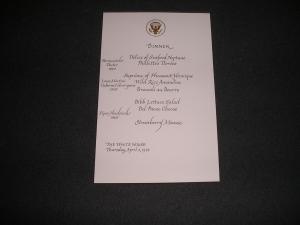 White House Dinner Menu Richard Nixon Chowder and Marching Society (S)