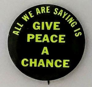 ALL WE ARE SAYING IS GIVE PEACE A CHANCE. 1969 JOHN LENNON ANTI WAR PIN - YELLOW