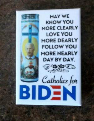 2020 Democrat JOE BIDEN President CATHOLICS FOR BIDEN Prayer Candle logo Button