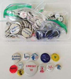 Huge lot of 223 John Lindsay 1972 Presidential Campaign Pinback Buttons