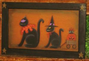 *~*PRIMITIVE*~* HP FOLK ART BLACK CATS ~ HALLOWEEN ~*~ DOOR PANEL