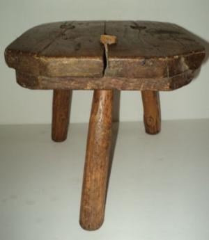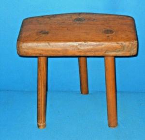 PRIMITIVE RUSTIC MILKING STOOL - THREE LEGS - CA EARLY 1800'S