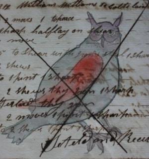 Large Original Amish Ledger Paper Watercolor Painting of Owl - 1813 Date
