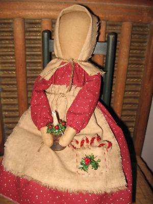 Primitive Christmas Prairie Doll ~ Candle & Candy Canes ~ by Willow Creek