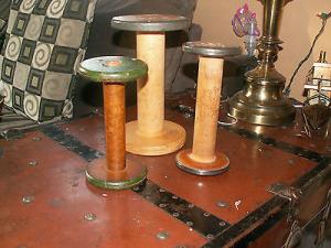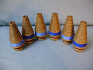 6 WOODEN TREE, CONE SHAPE SPOOLS, BOBBINS
