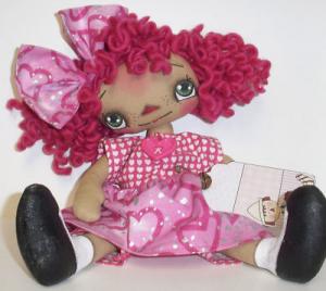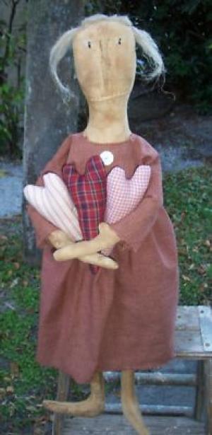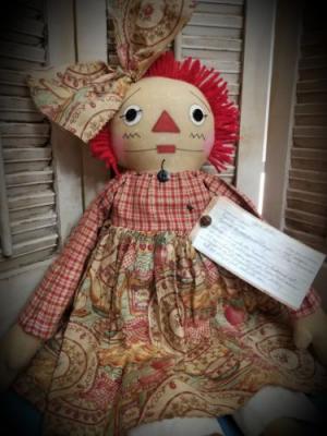 PriMiTiVe Folk Art RaGGedY ANN ANNiE DoLL VaLenTiNe TaG